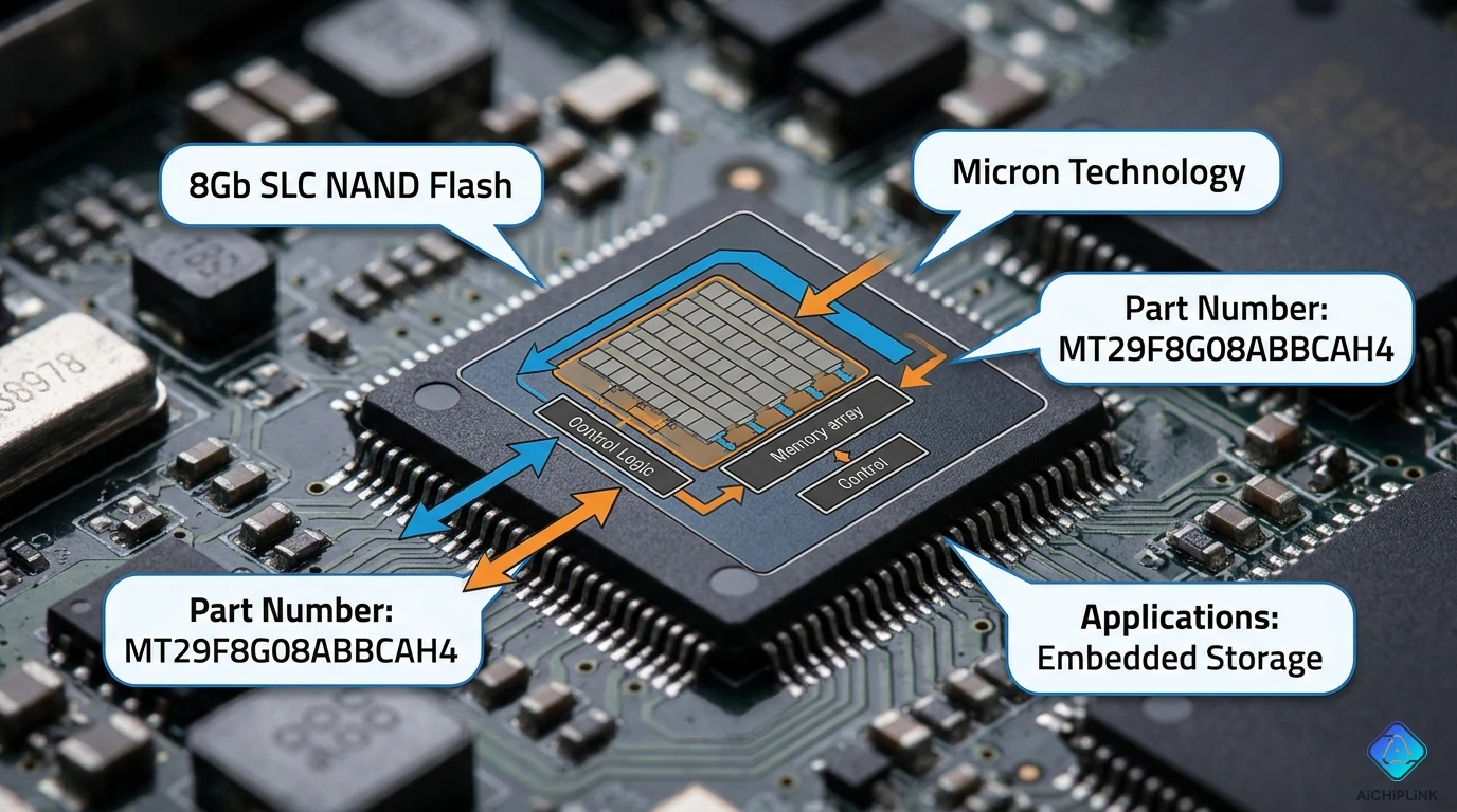 One-Line Summary: MT29F8G08ABBCAH4 is a 1GB SLC NAND flash with high endurance (100K cycles) for industrial embedded systems requiring reliable non-volatile storage.