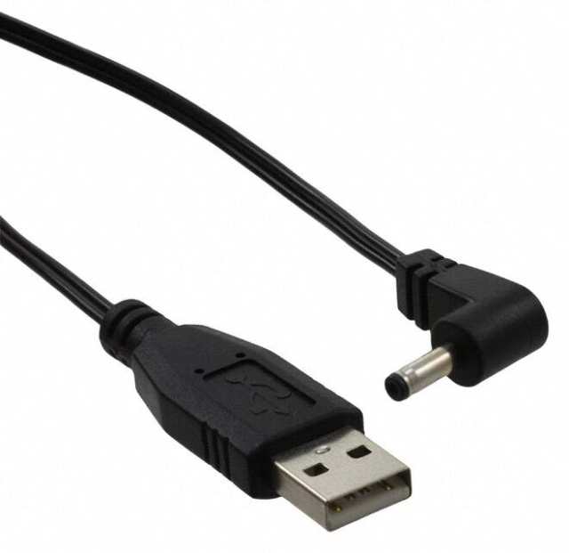 - Barrel Plug, Right Angle - 1.35mm ID, 3.5mm OD to USB A Male Plug
