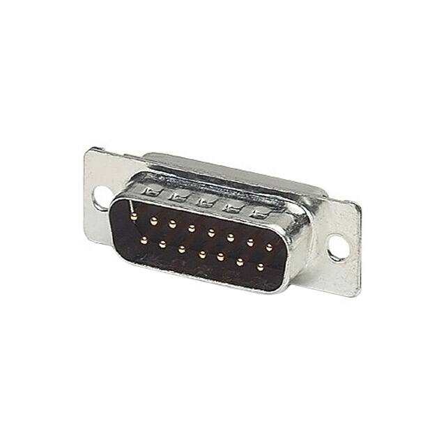 PLUSCON Series D-Sub Plug, Male Pins 15-Position Signal Solder Cup 2 DA A Free Hanging (In-Line) Gold Steel, Yellow Chromate Plated