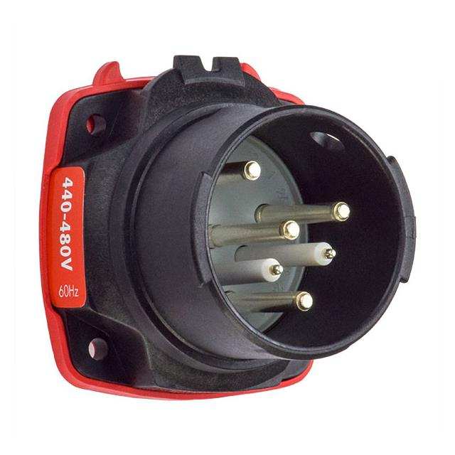 DXN30 INLET 30A 480 VAC.6 (2 + 3 Power + PE) Position Circular Connector Plug, Male Pins Screw
